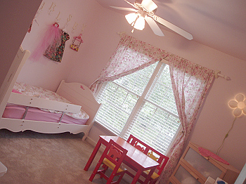自分のお部屋をシャナンに譲りゲストルームをチェルの部屋にしました。うっかり更新するのを忘れていました。白い壁はダンナ君がラベンダー色に塗りました。シャビーシックのカーテン・カーテンフックがGirlyな感じかな?