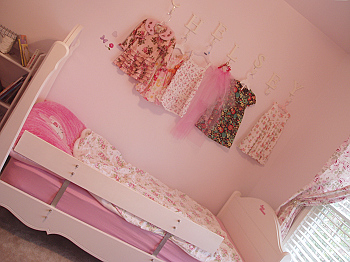 Chelseyというネームフックはポッタリーバーンで。シャナン用にも購入したかったのですがもう廃盤とのこと。色々ディスプレイできて便利です。専らチェルはドレスを飾るのが好きみたい。本当に女の子~な子です。チェスト、赤いテーブルセット、お花のランプはIKEAです。ベッドはRoomToGoのティーン用ベッド。長く使えそうです。もうすこし大きくなったらお揃いのドレッサーを購入する予定です。今からでも十分ドレッサーを使いこなしてくれそうなですが。(各画像はクリックで大きくなります)