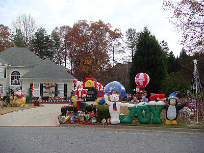 近所にものすご~く派手なクリスマスデコレーションをしているお宅があったのでパチリ。画像ではそのすごさが伝わらないんですけどね。(是非クリックで拡大画像を)ここまで隙間なく電光アイテムを並べる家庭って珍しい・・うちも派手は方で3,4つ飾っていますけどね(後日画像撮ります)