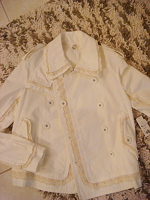 こちらもSAKSでついで買い。メッセージTで有名なe.vilのもの。PEACE LOVE AND SAKS(平和と愛とSAKSを)というメッセージの部分には金のスタッズ付。SAKSはデパート名なので、お買い物大好き~的な意味合いです。クリームのジャケットはレースが可愛くて残り1つのXSが少し小さめだったのに買ってしまいました。大好きなJoieというブランドです。