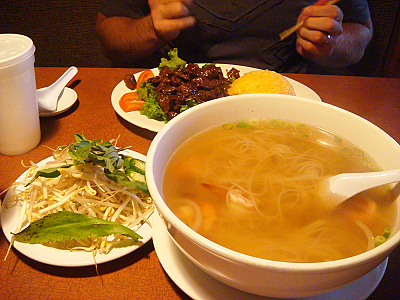 食べ物編。撮った日は全然バラバラです。週末に家族でいった私が大好きなベトナム料理店。大好物のPHOヌードルを目の前にぐっとこらえて先に撮影~。だんな君は牛のフィレミニョンとライスのセット。焼肉みたいな味付けです。中央・右はNordstromCafe(デパートの中に入っています)にて。アジアサラダも今日のスペシャルチキンサンドイッチも美味でした。やっぱりここはハズレナイ、子供にも優しいし大好きです。