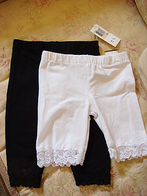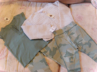 今日の収穫・・ブルーミーのセールでシャナンにGuessのTシャツ(袖がレースで可愛い)とチェルとオソロのレギンス。ちなみに下の黒いのはシャナン用です・・爆